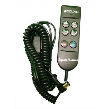 6 Button Golden Hand Control for older PR-756, PR-506, PR510 and PR-505 MaxiComfort and Zero Gravity Lift Chairs. Golden Number ZK756HCL. Round 5 pin connection at end of extension cable.